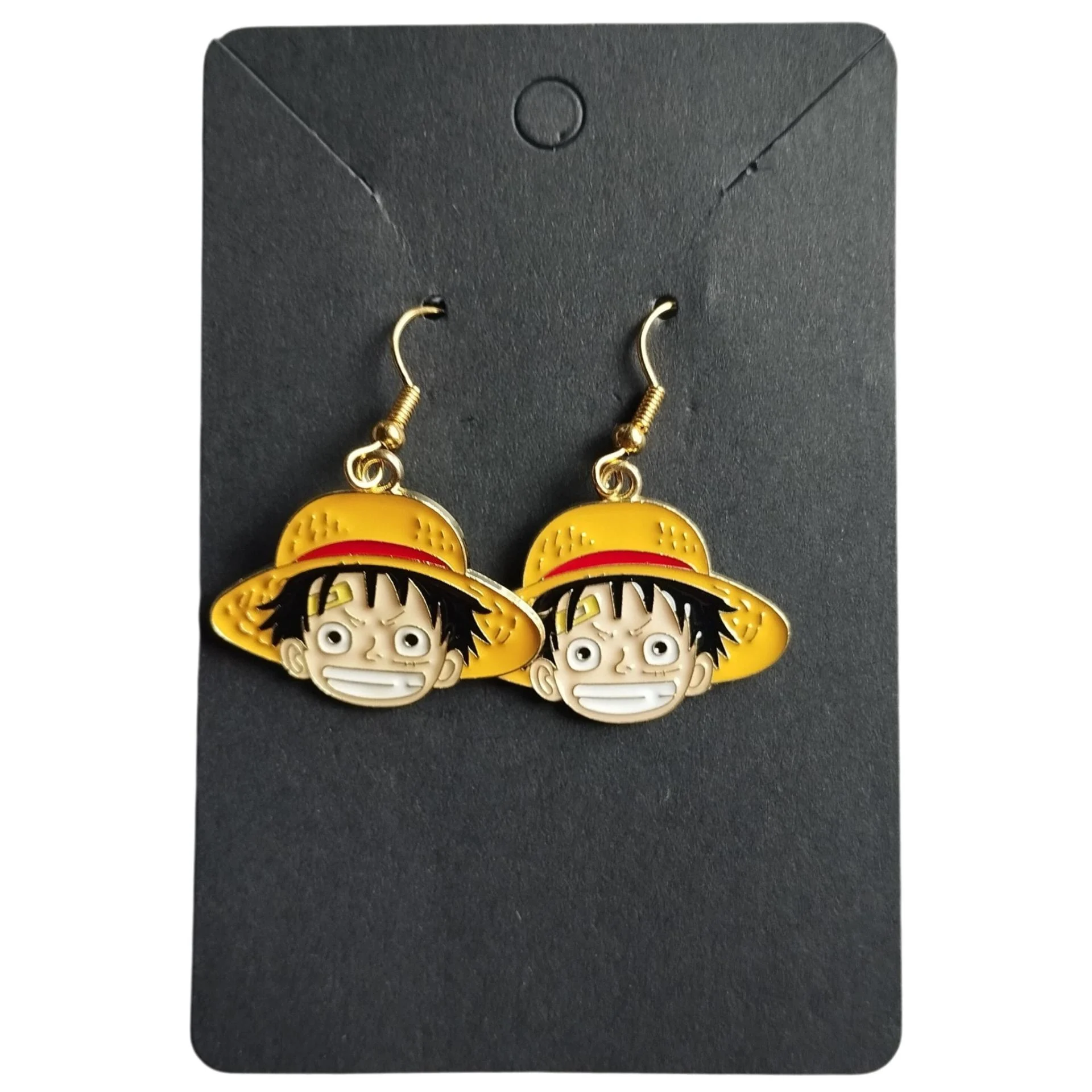 Description : Création artisanale d'une paire de boucles d'oreilles ONE PIECE, modèle Luffy. Un Bijou fantaisie fait main.