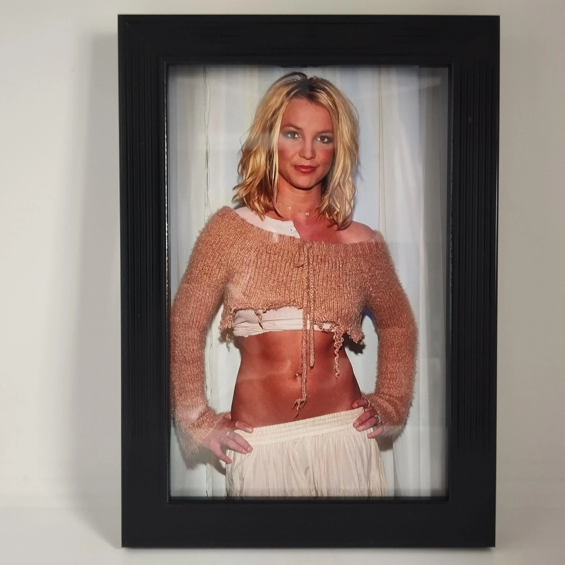 Description : Photo BRITNEY SPEARS avec cadre qui dispose d'un système d'accroche murale ou d'un pied qui permet de décorer votre table ou étagère.