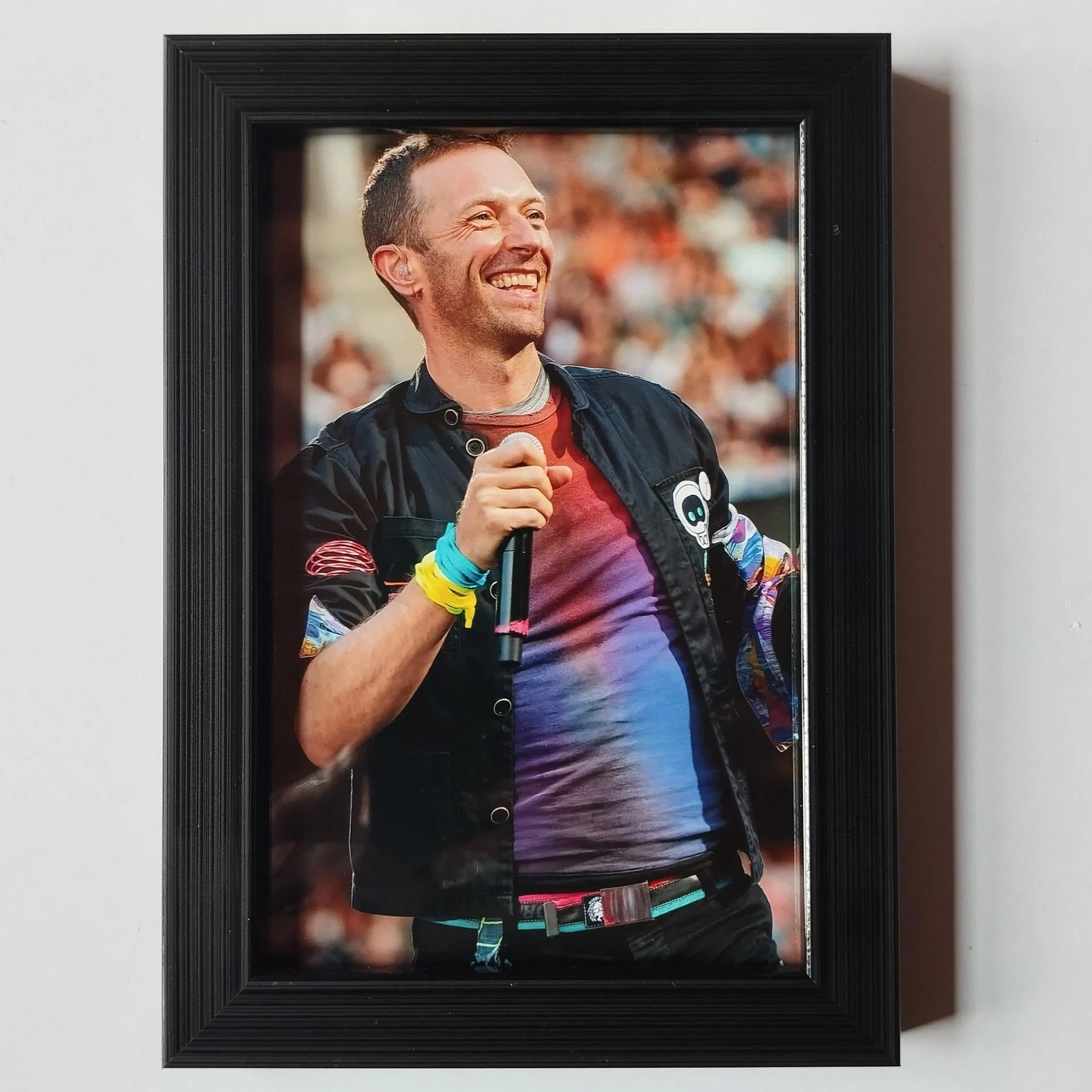 Description : Photo COLDPLAY avec cadre qui dispose d'un système d'accroche murale ou d'un pied qui permet de décorer votre table ou étagère.
