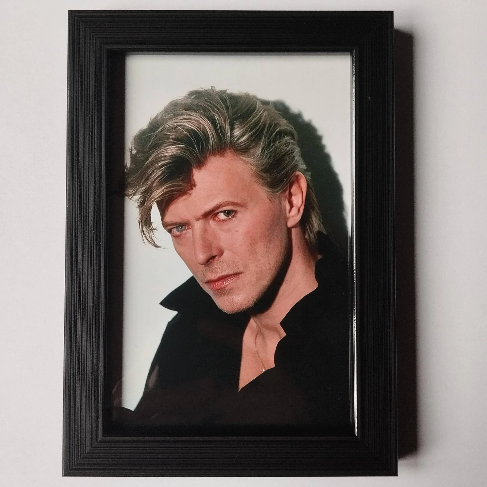 Description : Photo DAVID BOWIE avec cadre qui dispose d'un système d'accroche murale ou d'un pied qui permet de décorer votre table ou étagère.