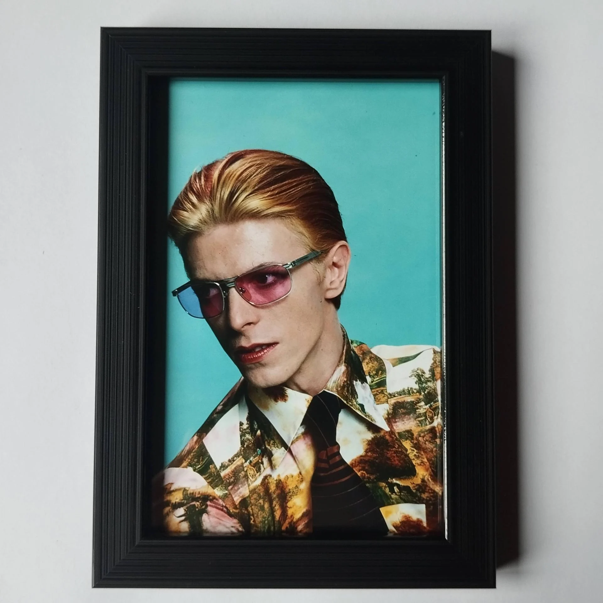 Description : Photo DAVID BOWIE avec cadre qui dispose d'un système d'accroche murale ou d'un pied qui permet de décorer votre table ou étagère.