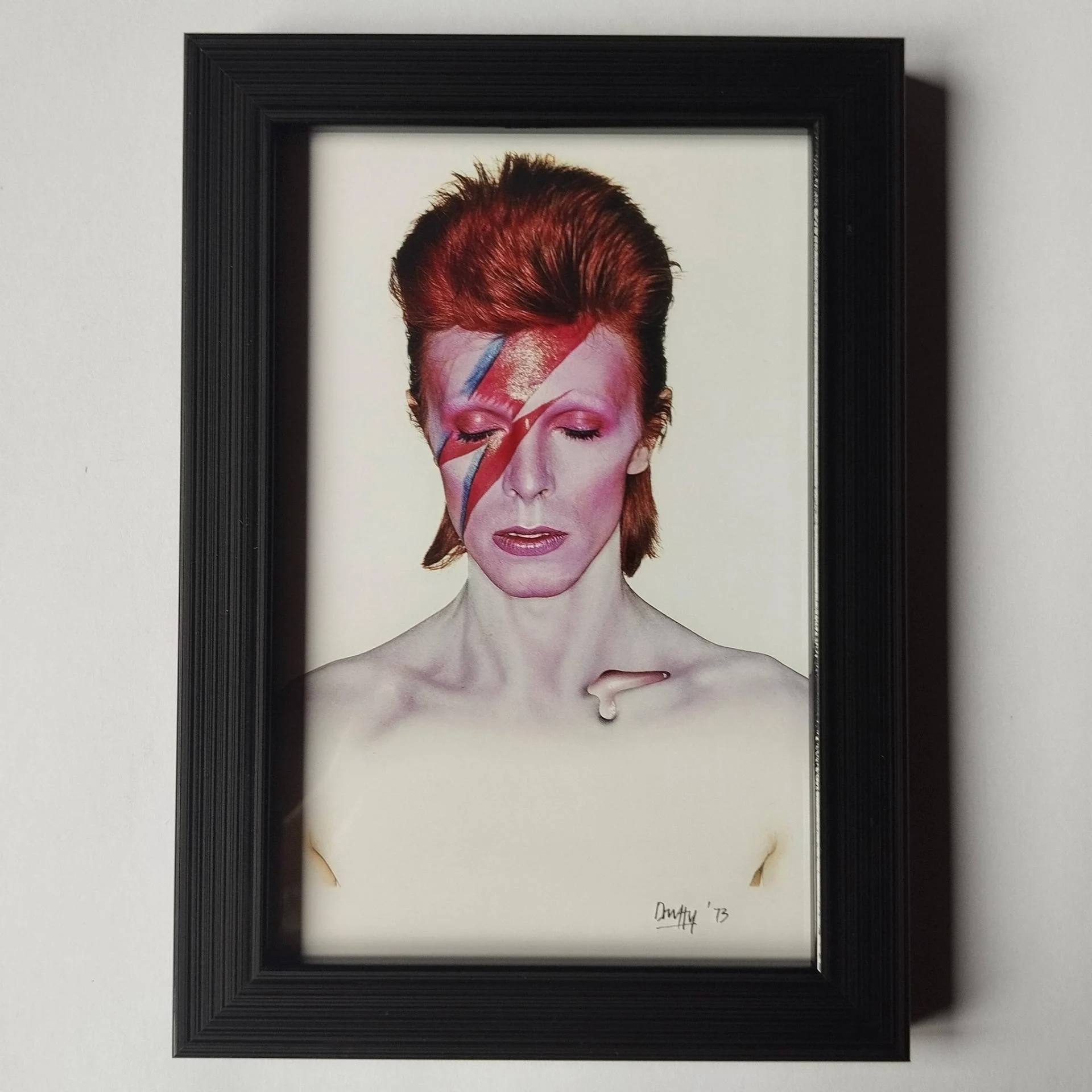 Description : Photo DAVID BOWIE avec cadre qui dispose d'un système d'accroche murale ou d'un pied qui permet de décorer votre table ou étagère.