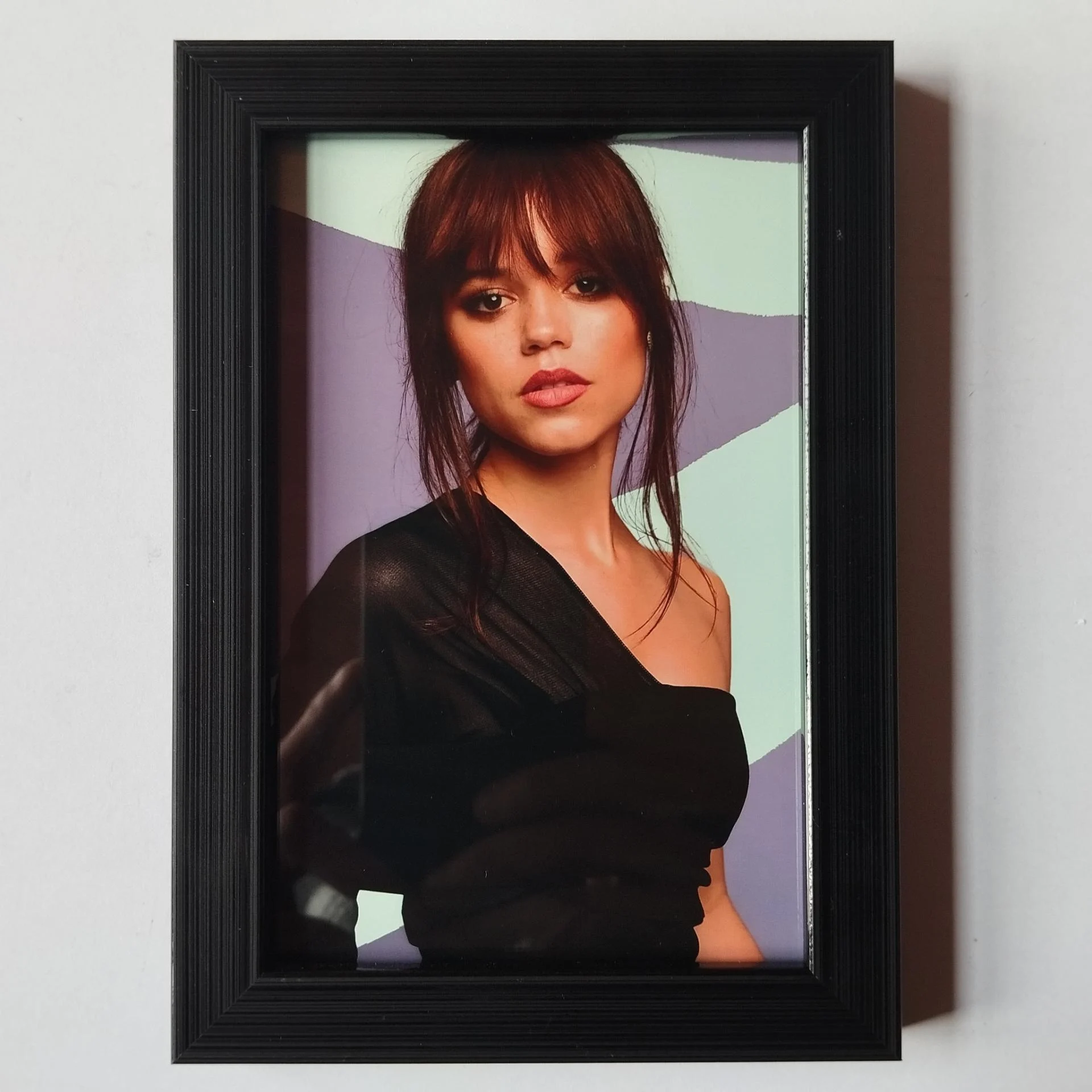 Description : Photo JENNA ORTEGA avec cadre qui dispose d'un système d'accroche murale ou d'un pied qui permet de décorer votre table ou étagère.