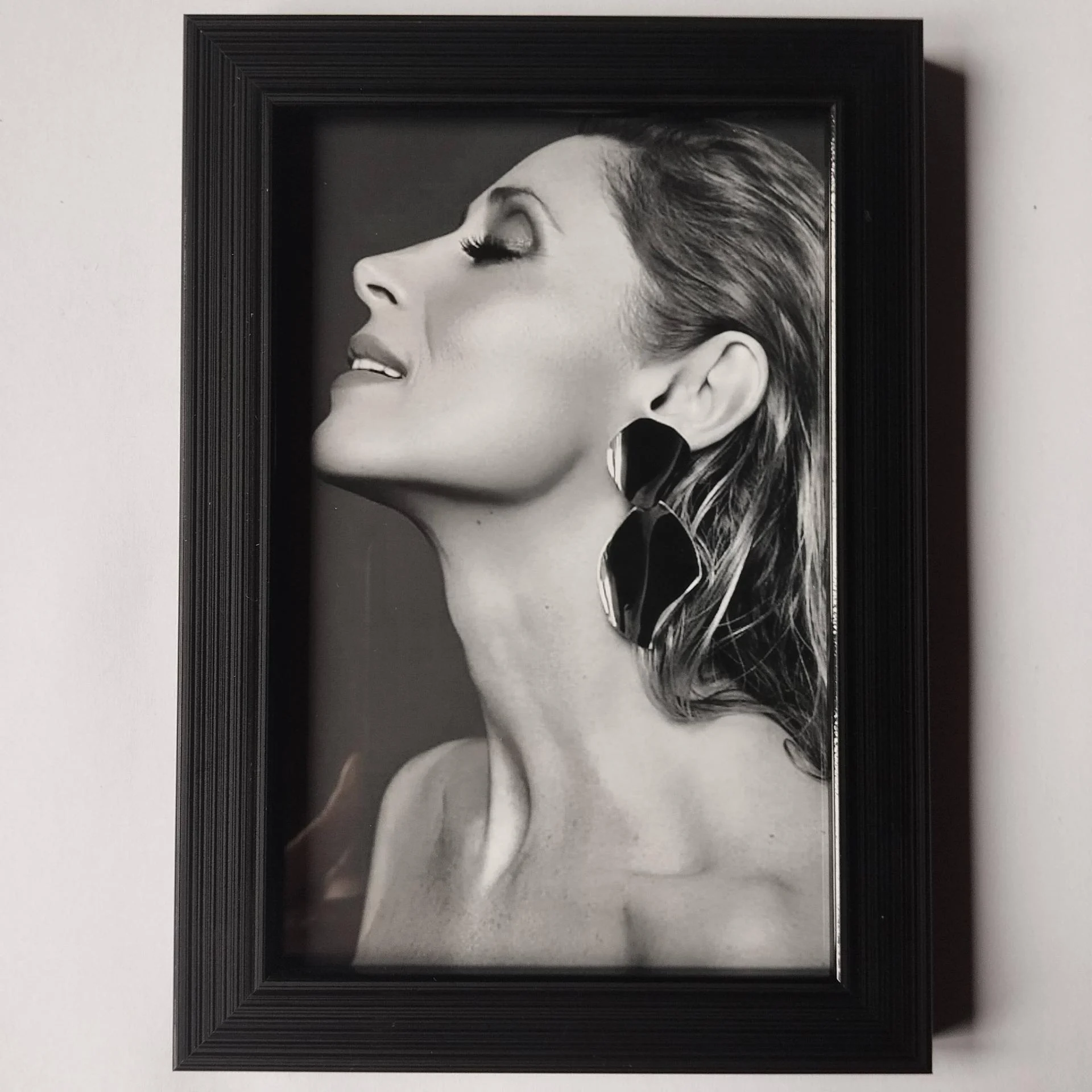 Description : Photo LARA FABIAN avec cadre qui dispose d'un système d'accroche murale ou d'un pied qui permet de décorer votre table ou étagère.