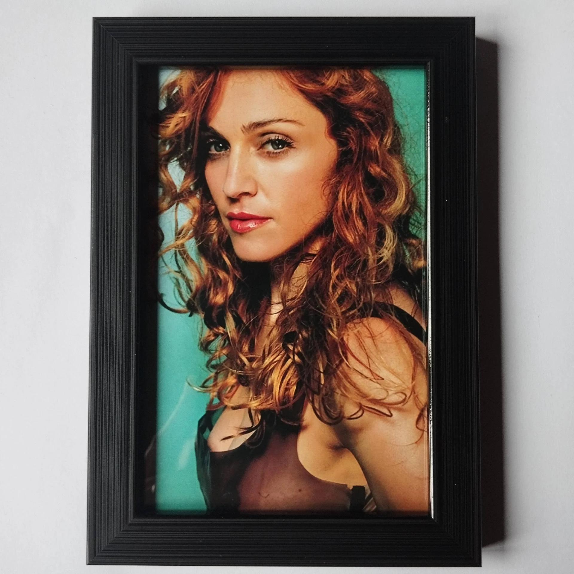 Description : Photo MADONNA avec cadre qui dispose d'un système d'accroche murale ou d'un pied qui permet de décorer votre table ou étagère.