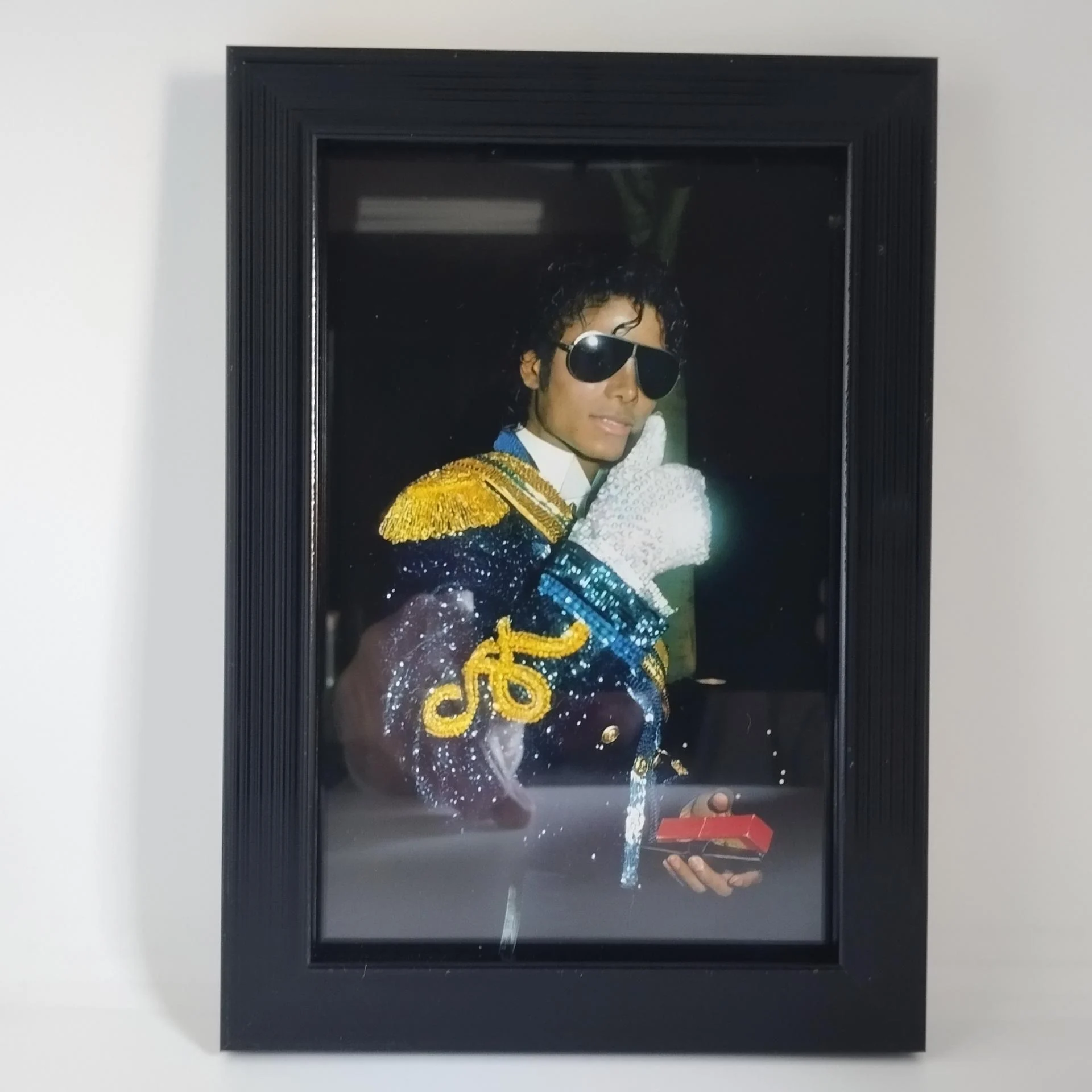 Description : Photo MICHAEL JACKSON avec cadre qui dispose d'un système d'accroche murale ou d'un pied qui permet de décorer votre table ou étagère.