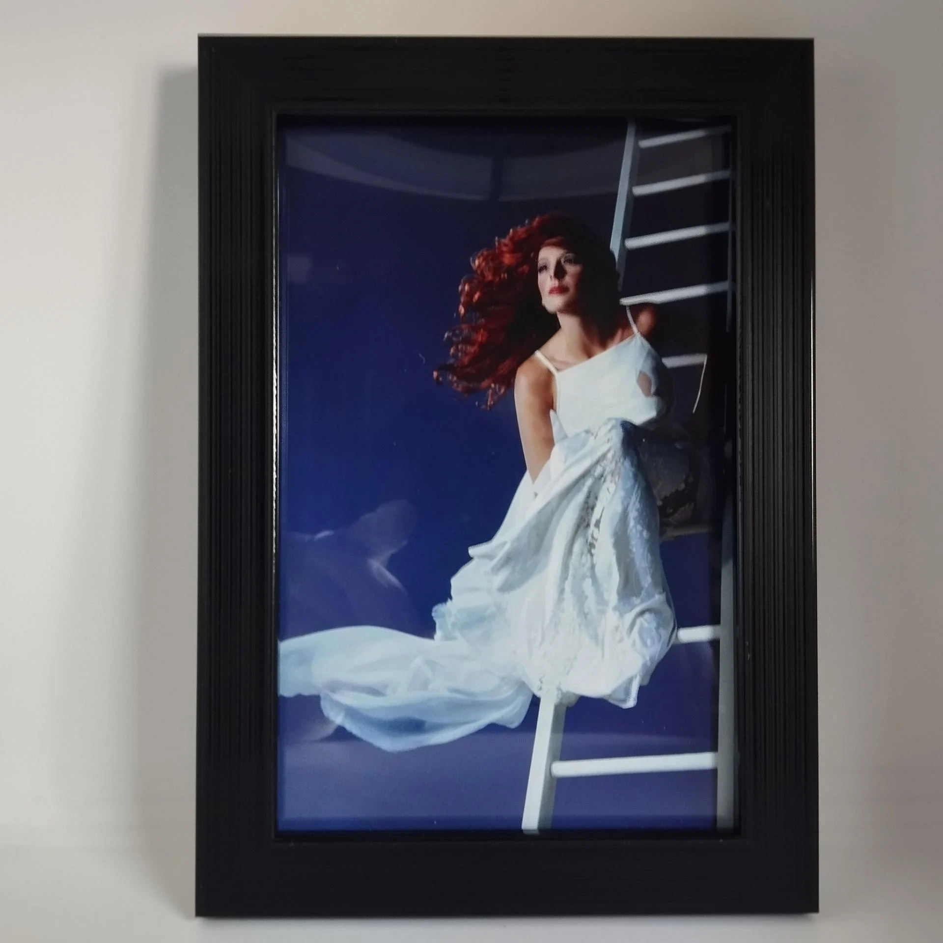 Description : Photo MYLENE FARMER avec cadre qui dispose d'un système d'accroche murale ou d'un pied qui permet de décorer votre table ou étagère.