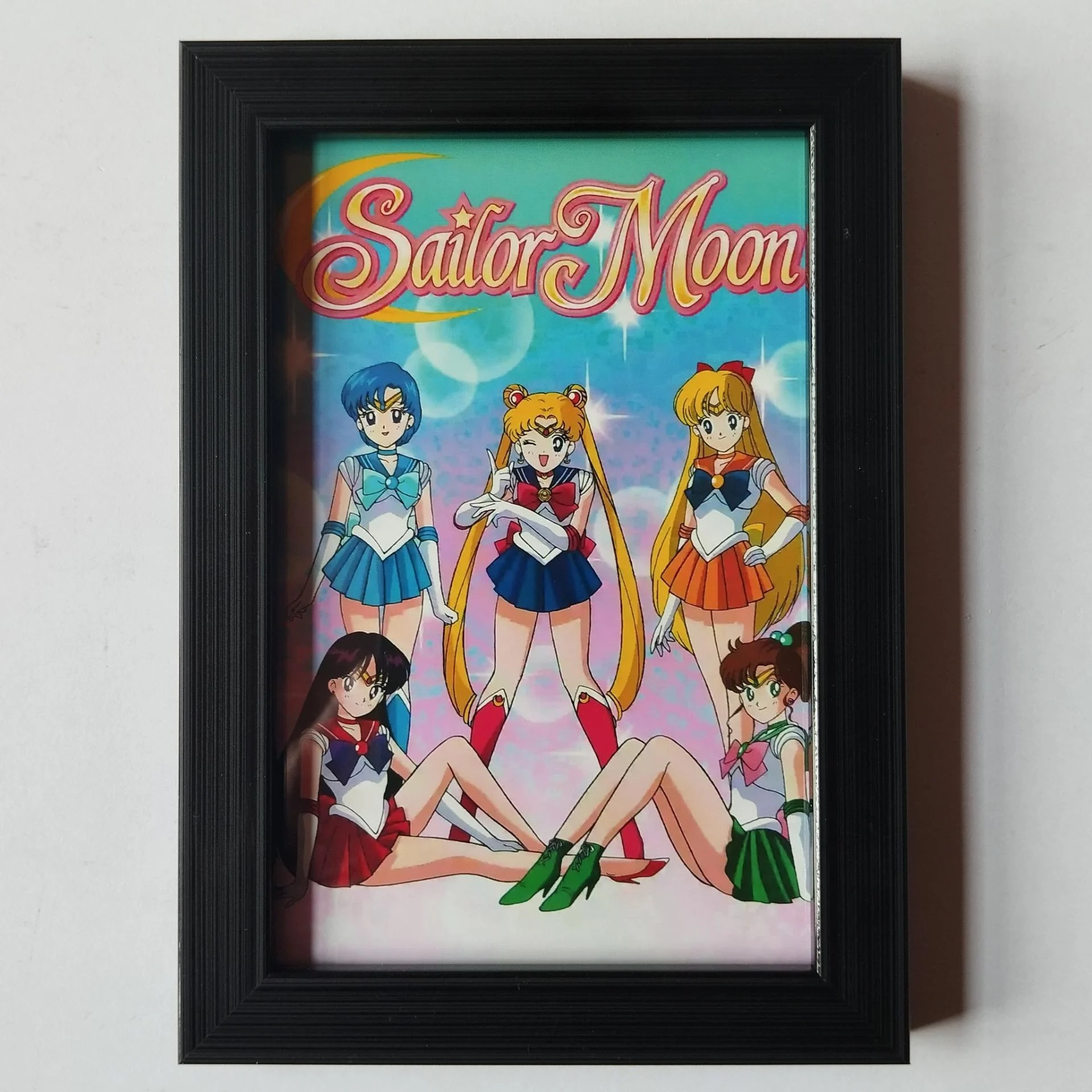 Description : Photo SAILOR MOON avec cadre qui dispose d'un système d'accroche murale ou d'un pied qui permet de décorer votre table ou étagère.