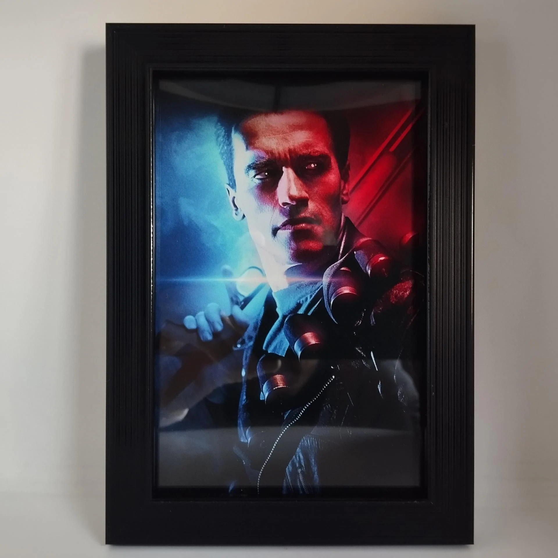 Description : Photo TERMINATOR avec cadre qui dispose d'un système d'accroche murale ou d'un pied qui permet de décorer votre table ou étagère.
